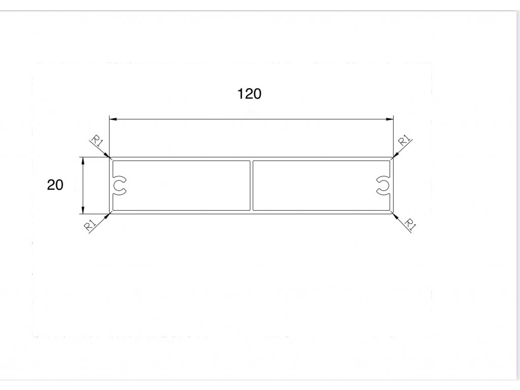 Konstrukční hliníkový profil typ plaňka 120 x20 x1,2 Barevný odstín RAL 7016 antracit jemná struktura laku .