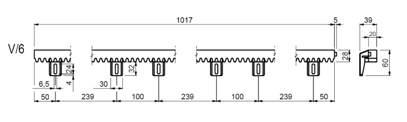 Profily ozubených hřebenů je nutno objednat samostatně viz odkaz hřebeny bran (ozubený hřeben V6 nebo S6).