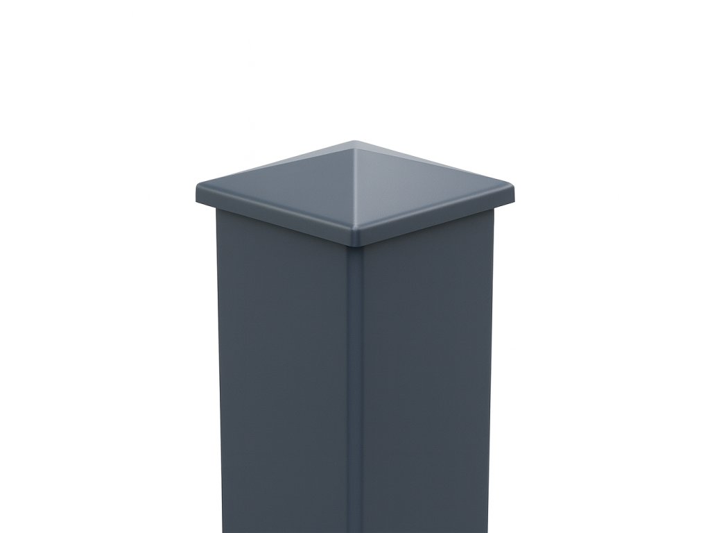 Tower 1,1 m ocelový sloupek v RAL 7016 Antracit s plotnou pro ukotvení k podkladu a vrchni stříškou